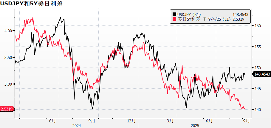 近期日元并莫得更随好意思联储降息预期升温而增值,USDJPY与好意思日利差走势背离,原因便是日本本身的政事风险。