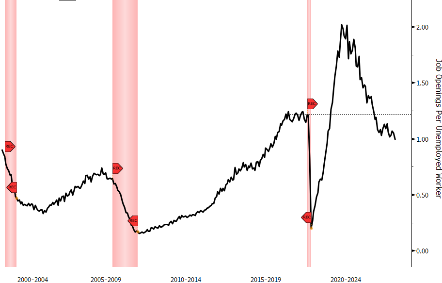 1. 周三晚间公布的JOLTS数据败露,7月职位空白数718.1万东说念主,较6月份下修后的735.7万东说念主减少了17.6万东说念主,低于预期。好意思联储料到劳能源市集老成历程的一项要道倡导:职位空白数/幽闲东说念主口,从6月下修后的1.049降至0.992,为2021年4月以来初度低于1.0。