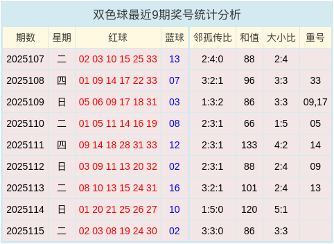 蓝球分析:上期蓝球开出号码02,属于偶数号码,本期预料开异常数蓝球号码:09。